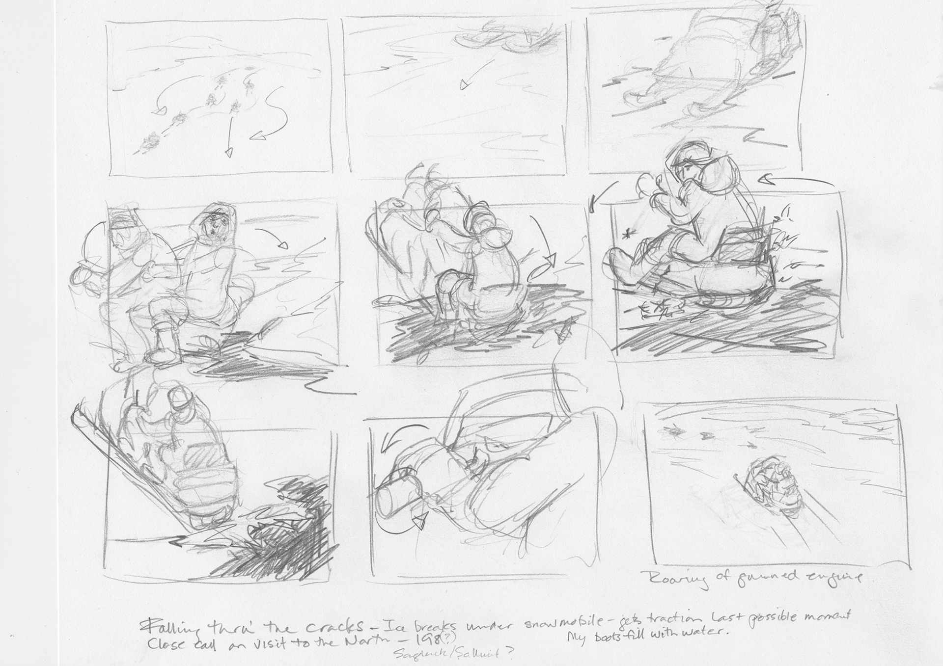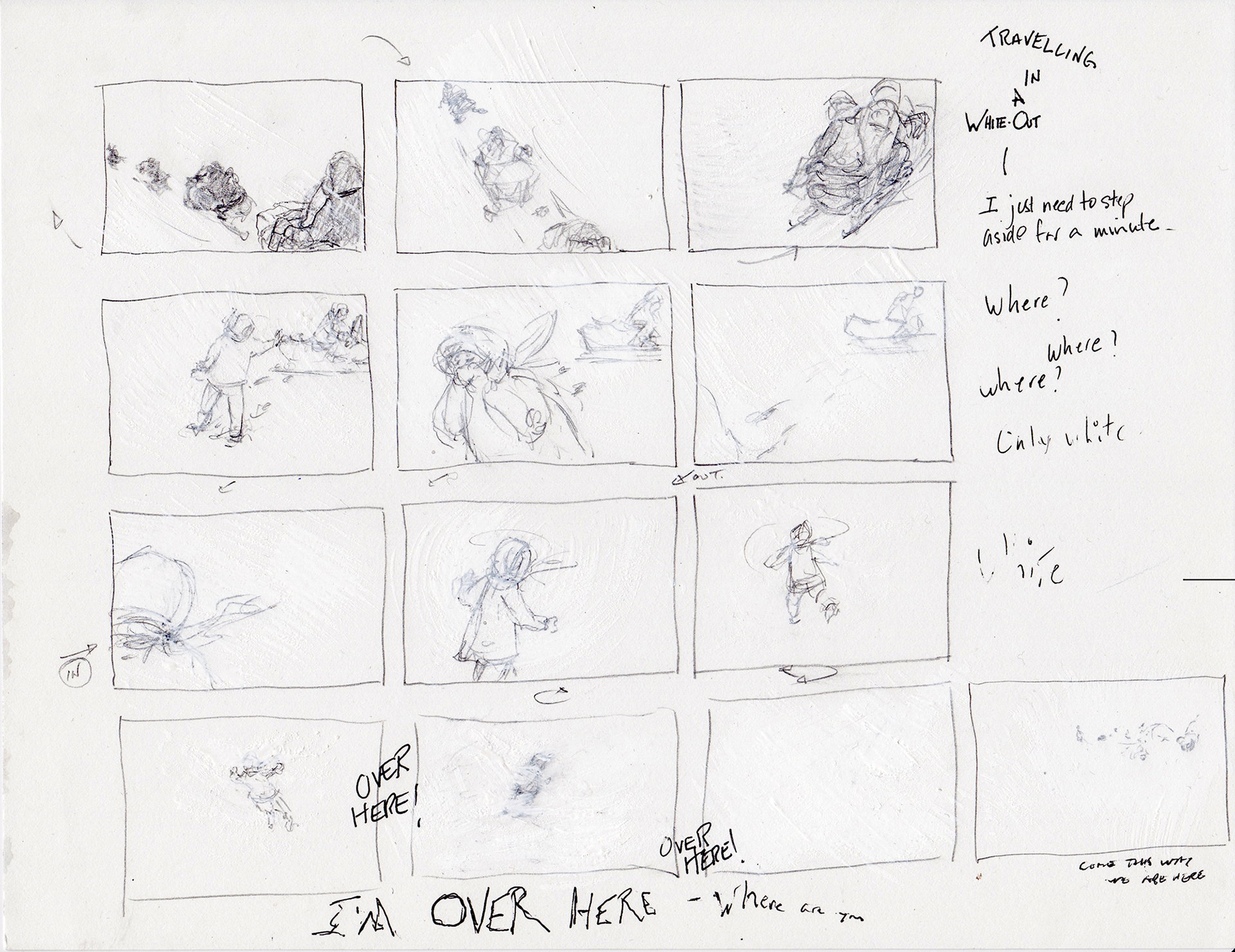 Preliminary inspirational sketches, paintings,storyboard elements