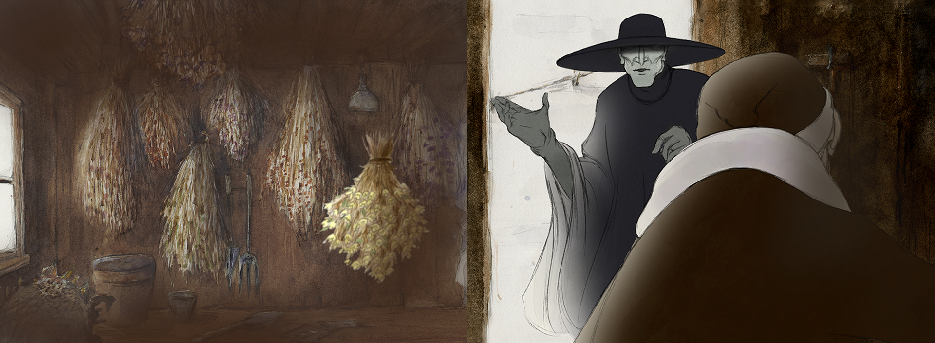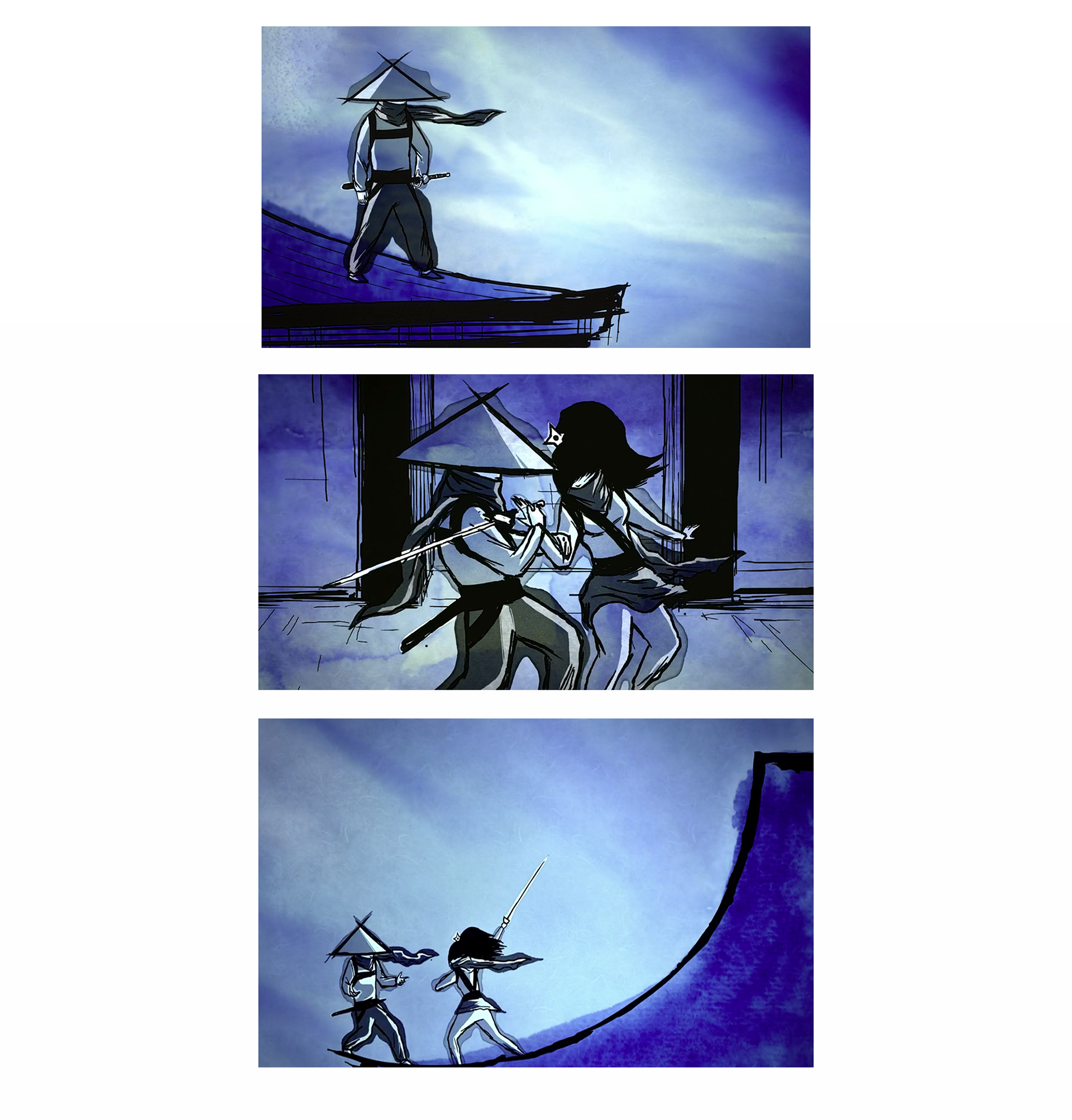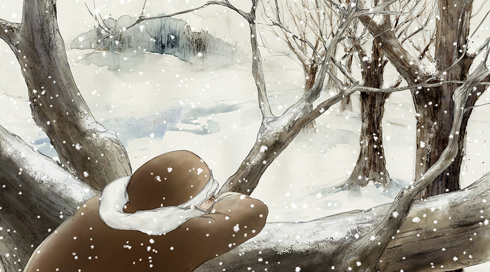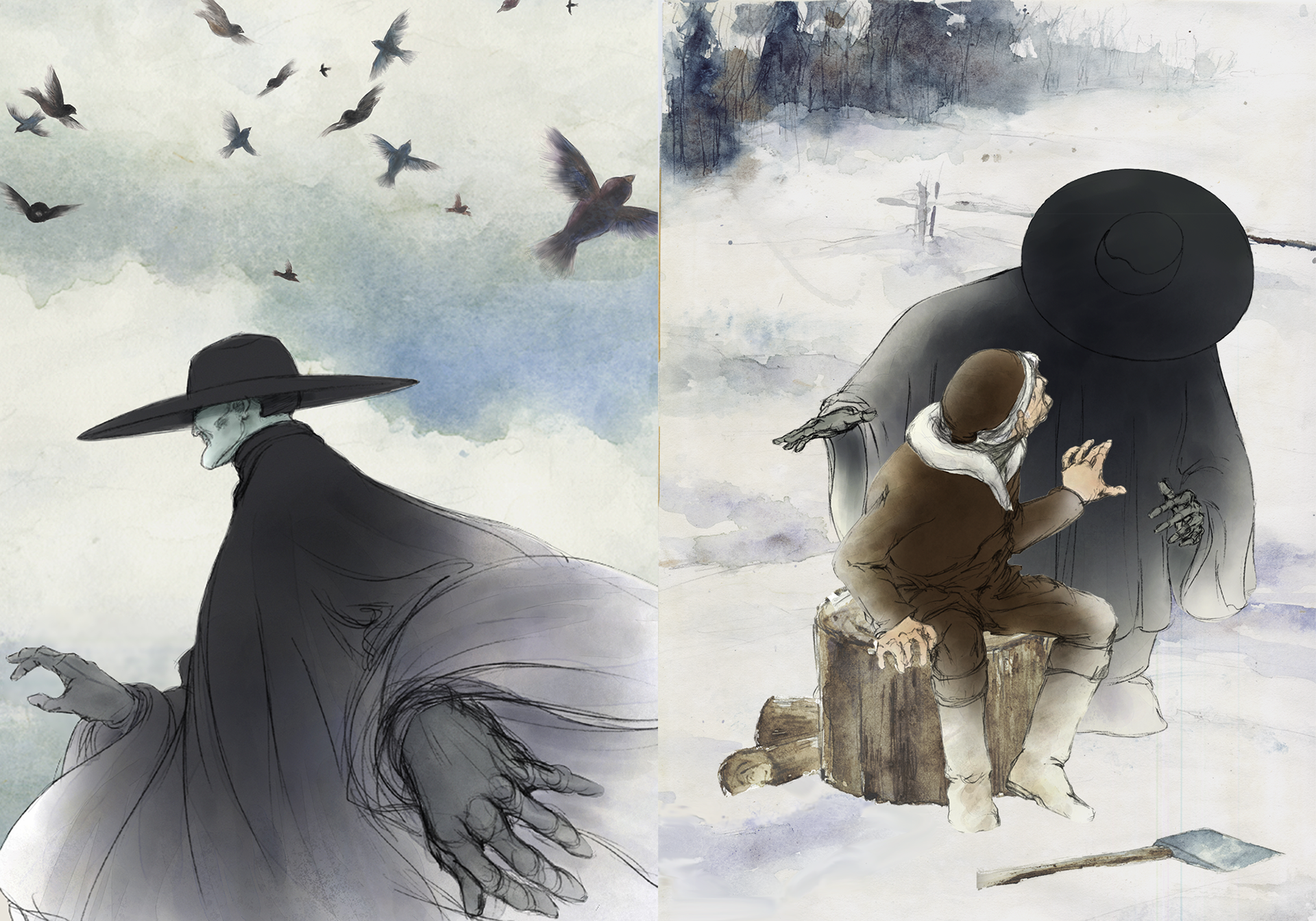 I worked closely with Chris to produce storyboard panels from rough thumbnail sketches. I contributed visual designs and detailed background layouts and character posing as a reference board to guide a 3D production team. My illustrations were also used for marketing purposes by the NFB.